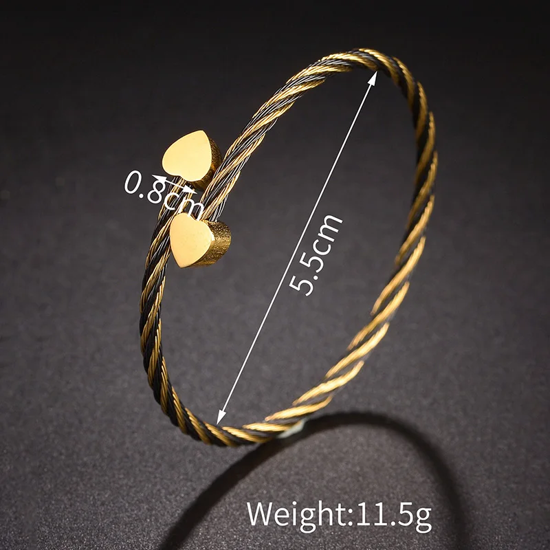 Fashion Stainless Steel Heart Bangle For Women Gold Color With Black Twist Bracelets Girl Jewelry Party Gift