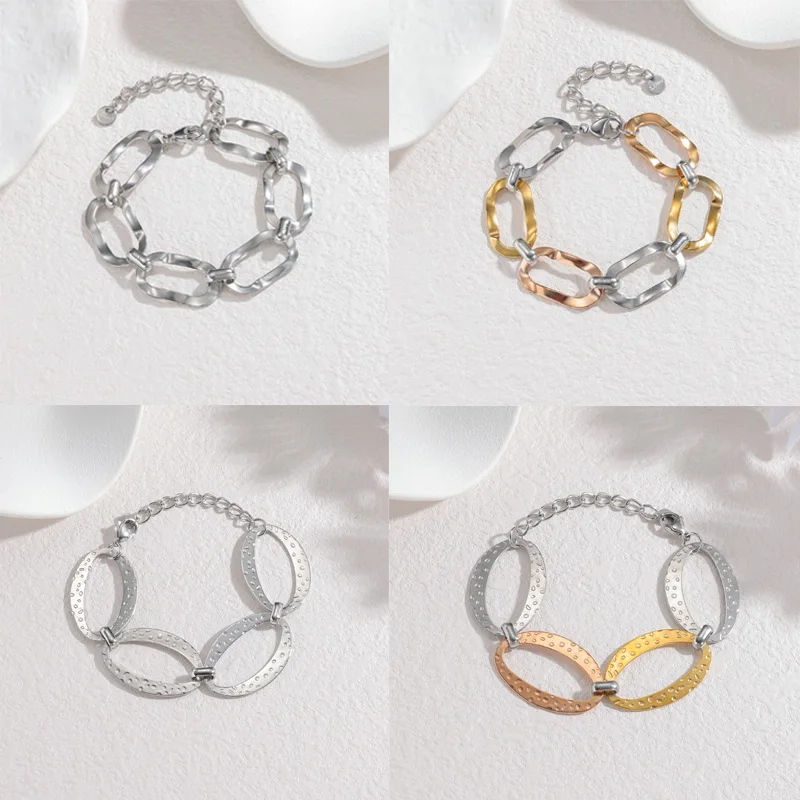 Luxurious Irregular Tri-Color Stainless Steel Chain Bracelet