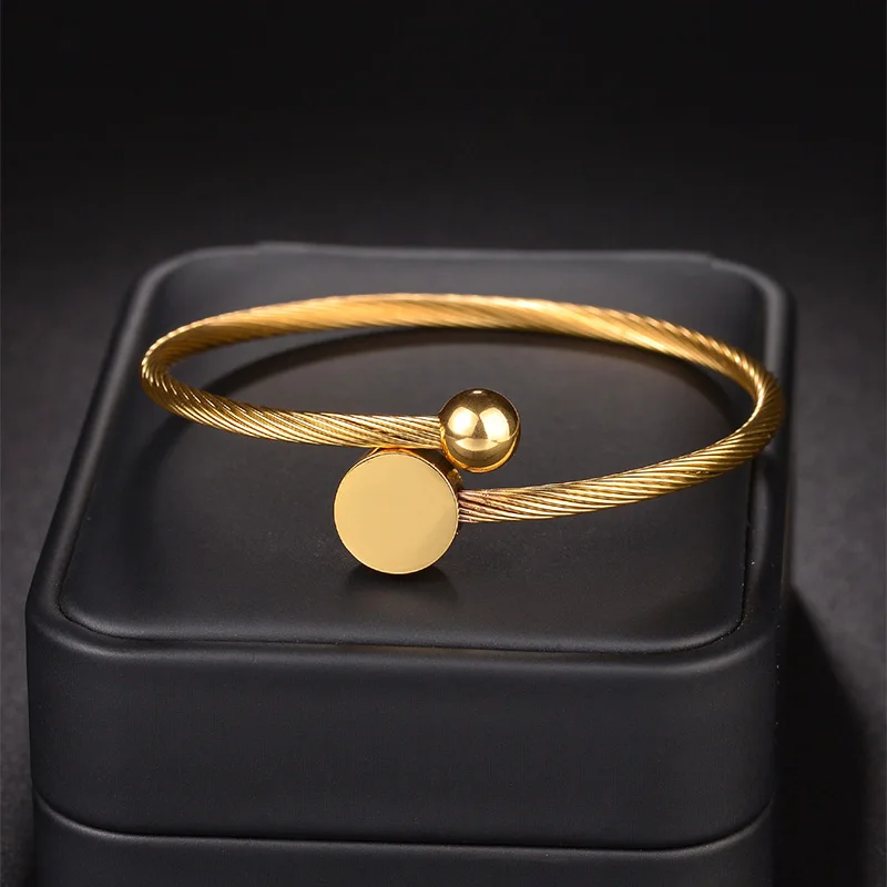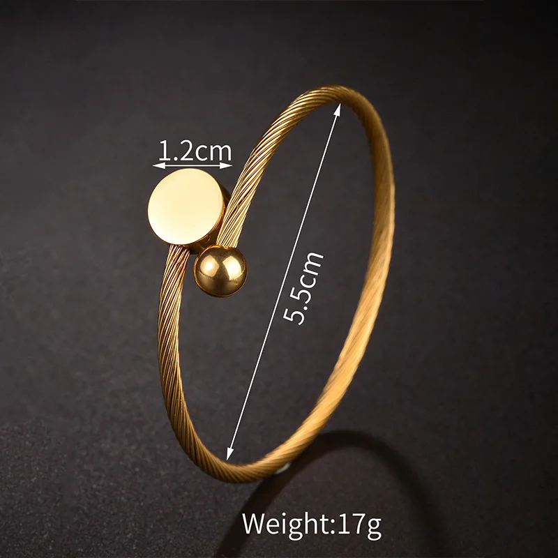 Luxury Gold Stainless Steel Bangle Bracelet – Adjustable Wire Cuff Jewelry for Women
