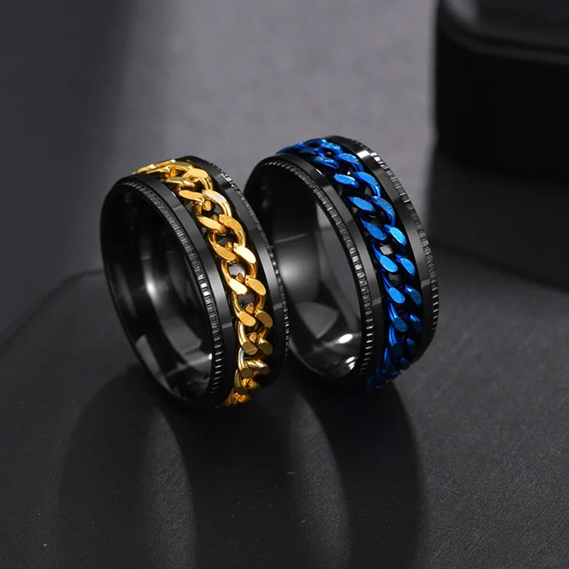 Men’s Stainless Steel Spinner Ring – Anxiety Relief Chain Fidget Ring