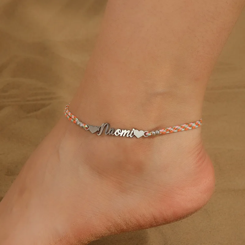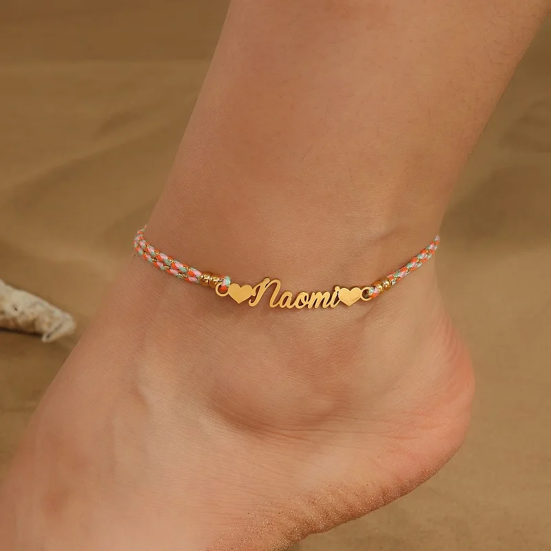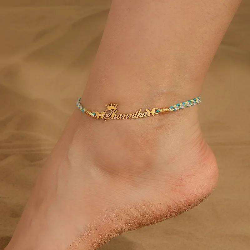 Personalised Braided Name Anklet – Custom Rope Chain Anklet with Name Plate