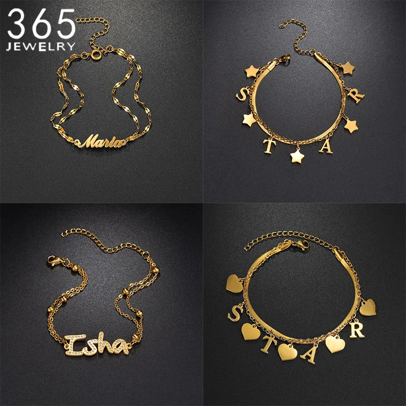 Customizable Designs: Choose from Name Anklet, STAR Charm Anklet, or Heart STAR Anklet.