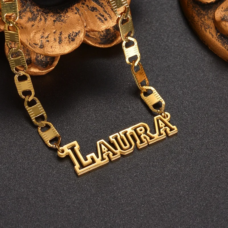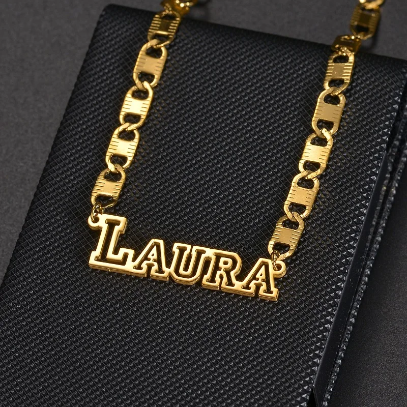 Make it personal with this stunning Personalised Name Necklace & Bracelet Set in radiant gold. Crafted from durable stainless steel with a bold, chunky chain design, each piece features a custom nameplate in elegant block lettering. Whether you're gifting someone special or treating yourself, this eye-catching set adds a stylish and meaningful touch to any outfit.